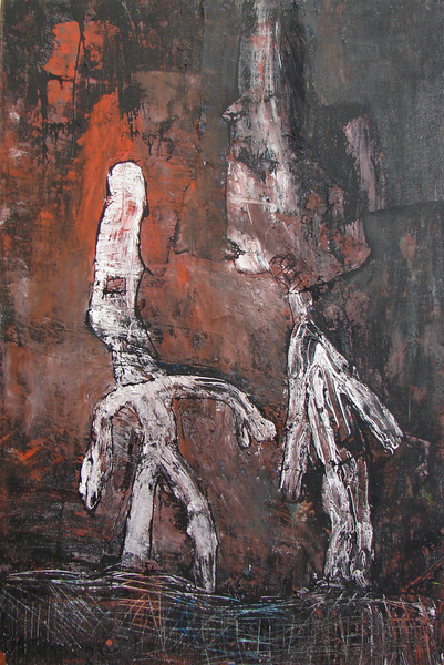 Der Augenblick, indem der Geist in Materie umgewandelt wird, löst eine Faszination in mir aus, durch die mein malerischer Duktus bestimmt wird. Ich schöpfe aus dem Zufälligen und mit dem Zugefallenen arbeite ich weiter. Die Farben reißen Formen an sich, die Zeichen verlangen Farbe und indem ich mich mitreißen lasse, gewinne ich mein Bild. Ziel ist nicht das Abbild, ebenso wie die reine Abstraktion. Ich will einfach etwas aus meinem Inneren heraus fließen lassen, das Form annehmen soll mit dem Formenkanon den ich mir erarbeitet habe. Das Bild soll vieldeutig bleiben und die Sicht, das Verständnis obliegt letztlich dem, der ihm gegenübertritt. Das Bild soll ein Reiz sein, der im Betrachter seine eigene Empfindungswelt auslöst. Wobei mich als Künstler das Urempfinden, die Ursprünglichkeit, das Noch-Nicht-Entdeckte, und die dabei stattfindenden Emotionen faszinieren.